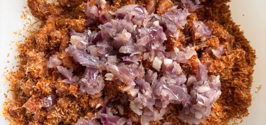 Dit klinkt simpel: smoor van vlees. Het kan alles zijn, zo lijkt het, maar deze smoor van West-Java is gemaakt van gelardeerd rundvlees; met wat vet dus. Ook wordt het vlees lang gesudderd om mals te worden en worden de stukken gebakken in boter. Daarvan krijgt het die specifieke smoor-‘look’; donker, zacht vlees maar wel nog duidelijk de structuur van het vlees zichtbaar. Enak!