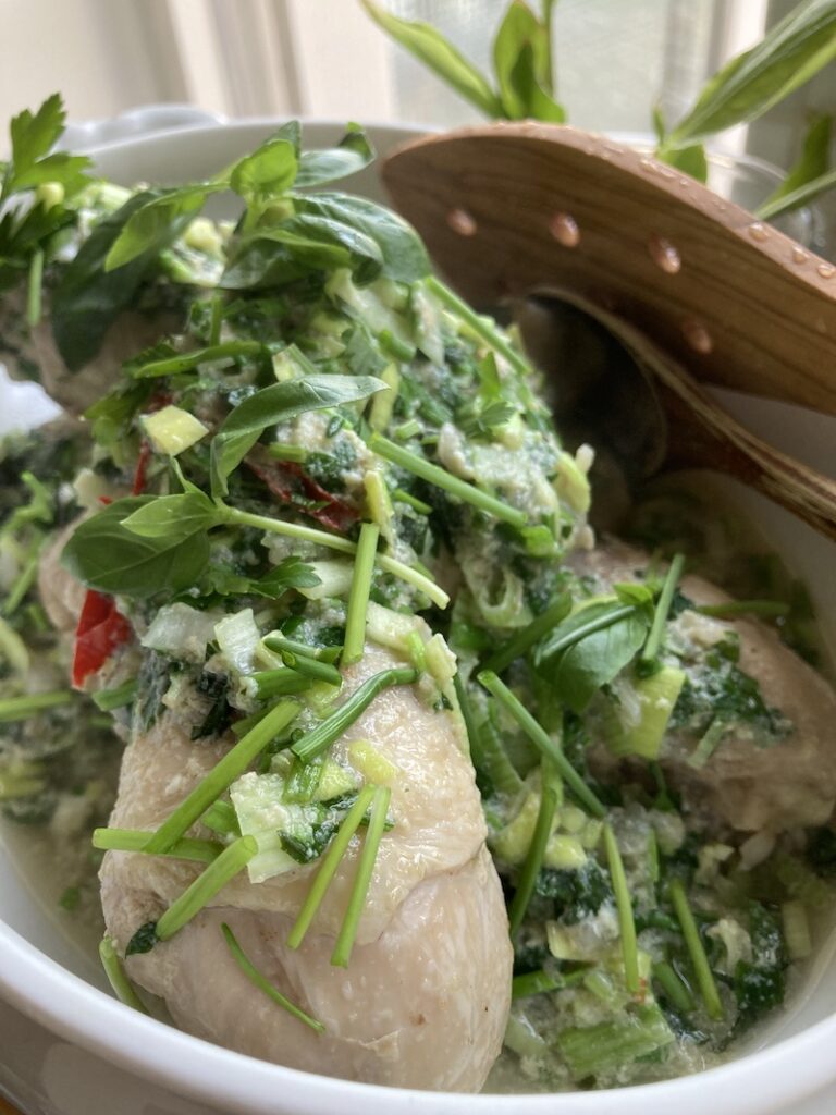 It tastes much better than I thought. This Menadonese chicken is buttery tender and falls off the bone and the crispy herbs of the sauce make everything very fresh and crisp.