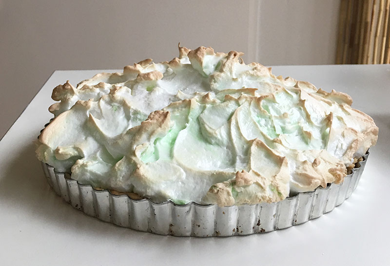 Dit is mijn versie van een citroentaartje met een lobbige meringue met wat druppels pandanextract. Ik maak alles zelf, van de citroencrème tot de bodem. Het kost wel wat tijd, maar dan is het ook echt feest als het af is.