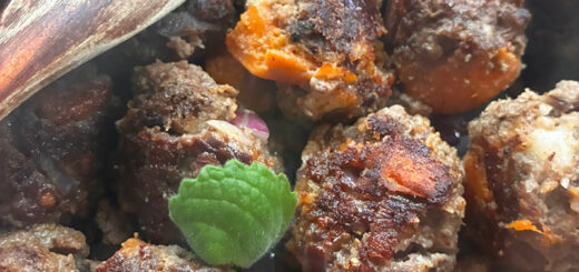 Ik heb mijn dodol niet in de juiste vorm gesneden (per ongeluk) maar wel in mooi vierkantjes. Ik til ze voorzichtig op en leg ze op een stukje pandanblad. We eten Lola’s dodol bij sterke koffie als toetje na het eten. Het is geweldig. Ik kan niet stoppen. De rest van de stukjes bewaren we in de koelkast.