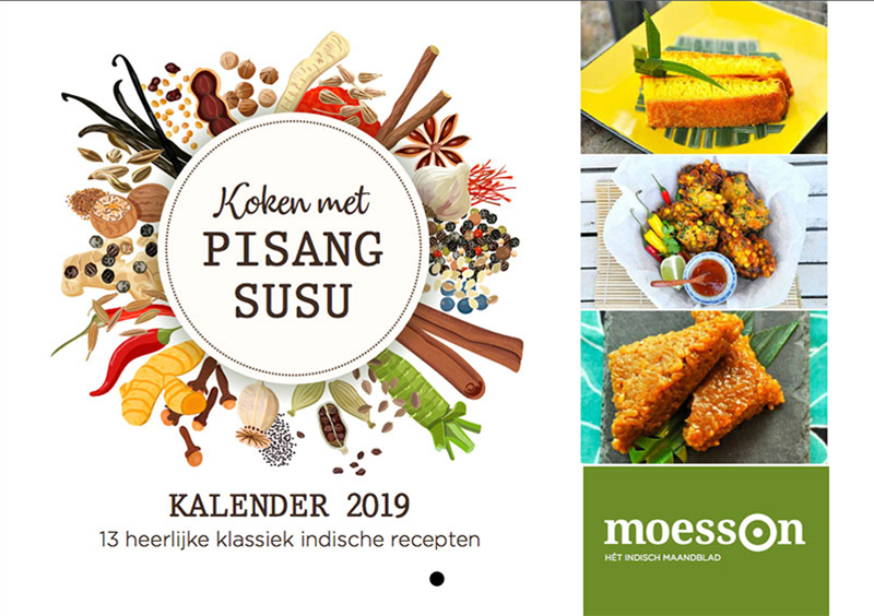 Trots presenteren wij de Moesson & Pisangsusu kalender 2019! Met deze kalender kan je elke maand genieten van een klassiek Indisch recept: Atjar Ikan, Dengdeng Blado, Rempejek? Van zoet tot hartig, van mild tot pittig; voor ieder wat wils.