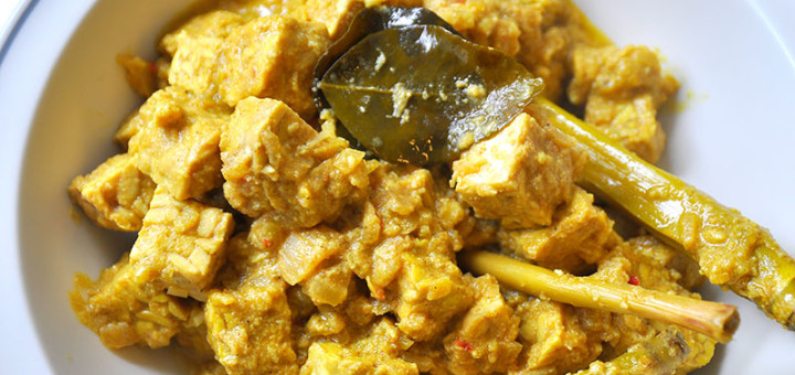 Een zacht, licht pittig gerecht van tempe. Tempe is gemaakt van sojabonen. Het wordt verkocht in blokken die je in...