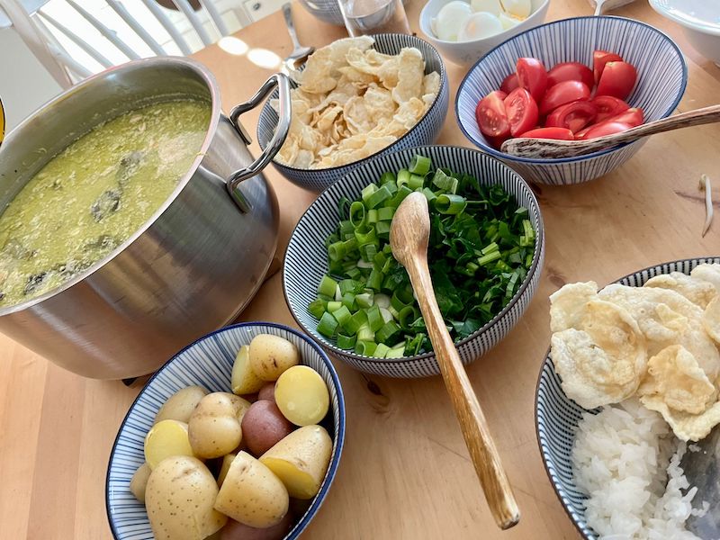 Soto Sumatra gebaseerd op Soto Ajam Beb Vuyk #134 op pagina 137 van het Groot Indonesisch Kookboek.