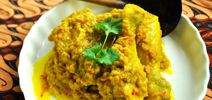 This is Beb Vuyk’s recipe for green chicken, or ajam bumbu hidjau from Padang. The ‘green’ in the chicken is...
