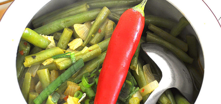 Eén van de bekendste Indische gerechten: sambal goreng boontjes. In het Indonesisch heet het sambal goreng buncis. Sperziebonen worden geroerbakt...