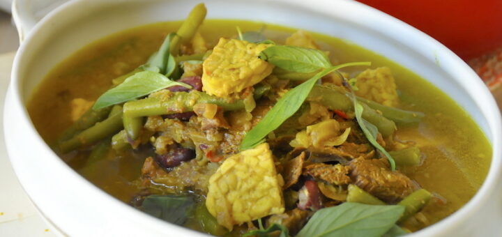 This sayur curry with tempeh is a real Indonesian curry made from beef stock that you prepare yourself. By the...